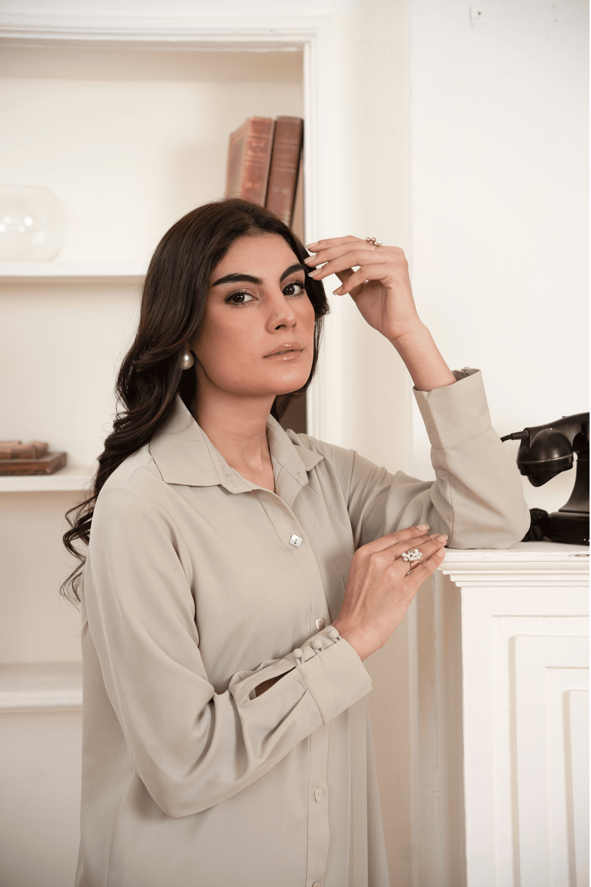 Inspired by the gentle hues of pesta green and the quiet shimmer of gold, it embodies serenity, femininity, and soulful sophistication.