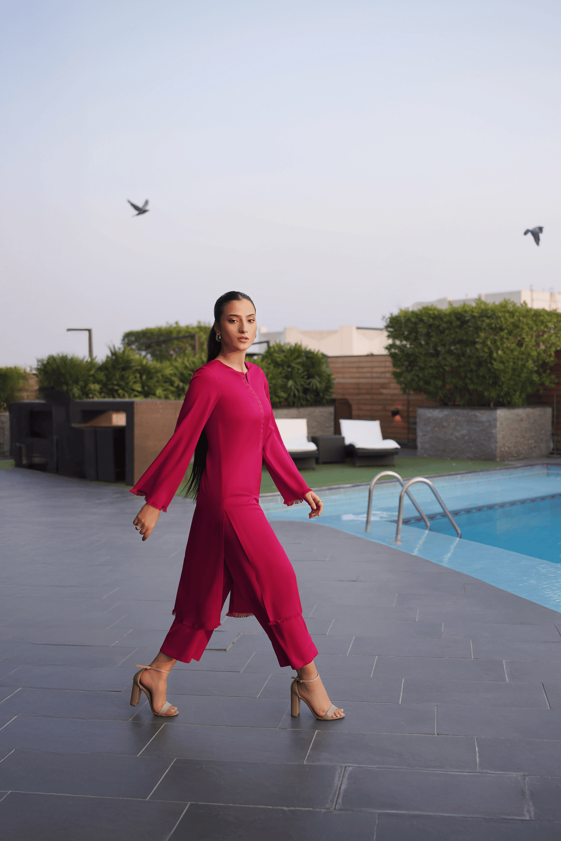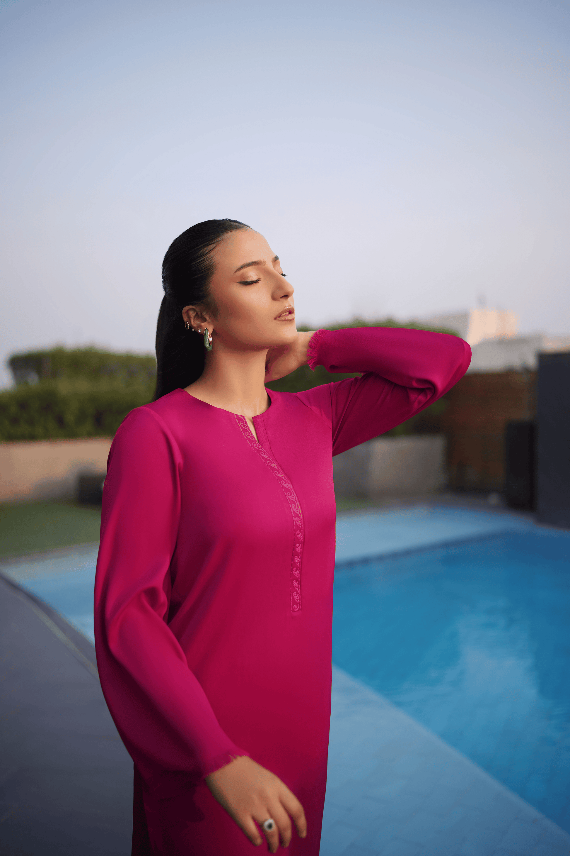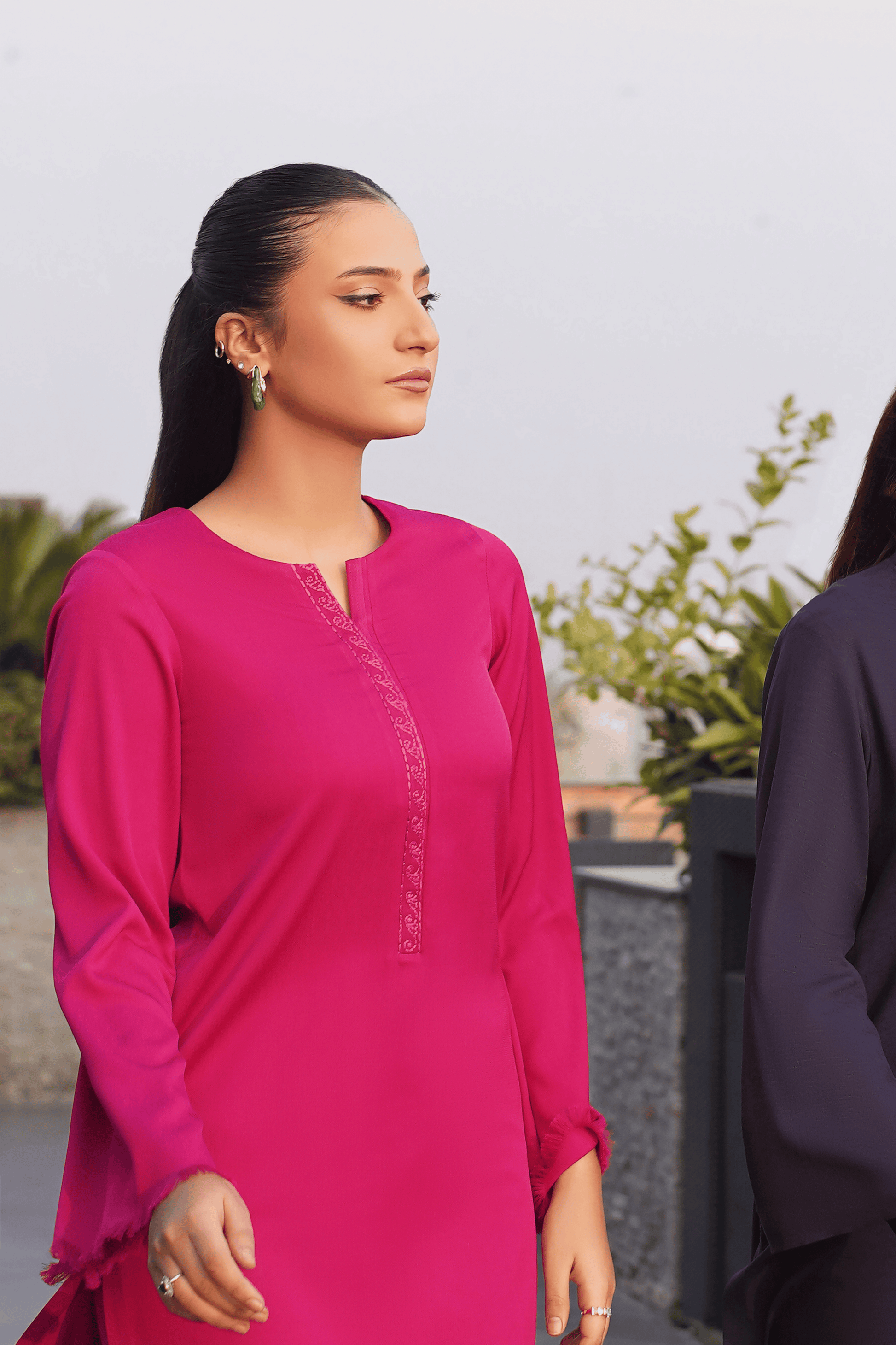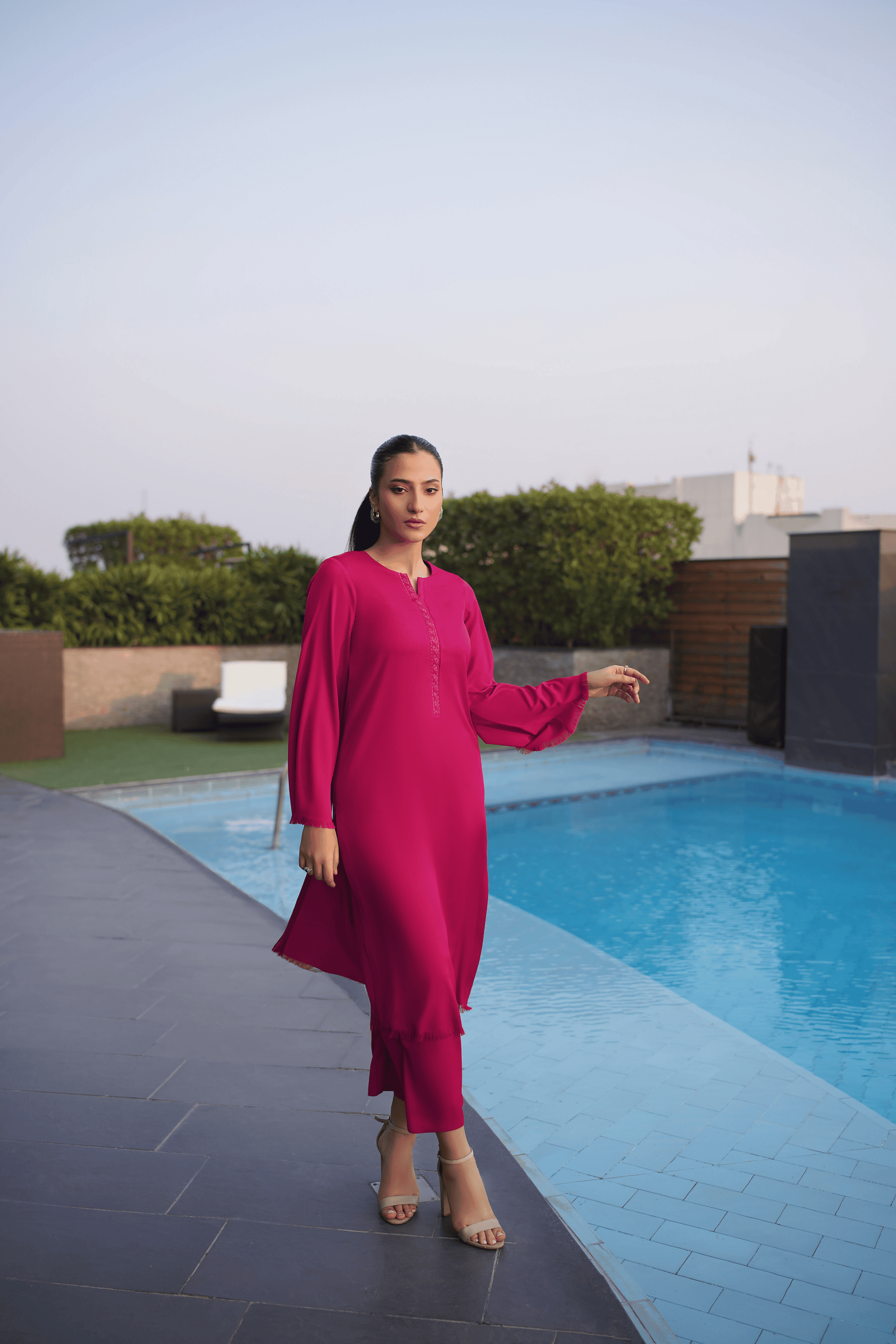 Vibrant fuchsia allure with textured elegance and effortless modernity.