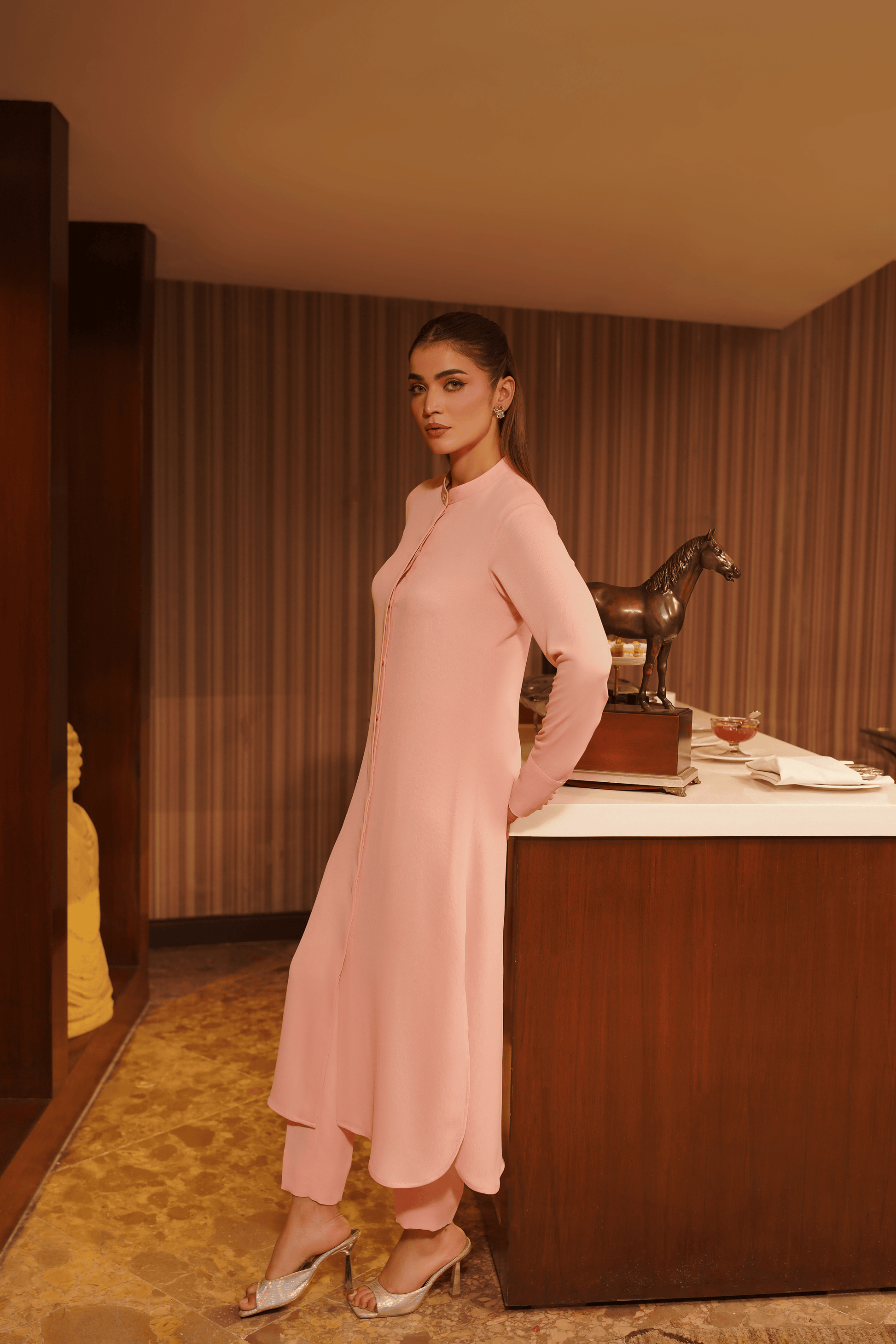 Confection: A flowy blush-toned co-ord that balances movement with minimal design. The understated button detail and soft tailoring make it a globally wearable style—versatile, chic, and timeless.