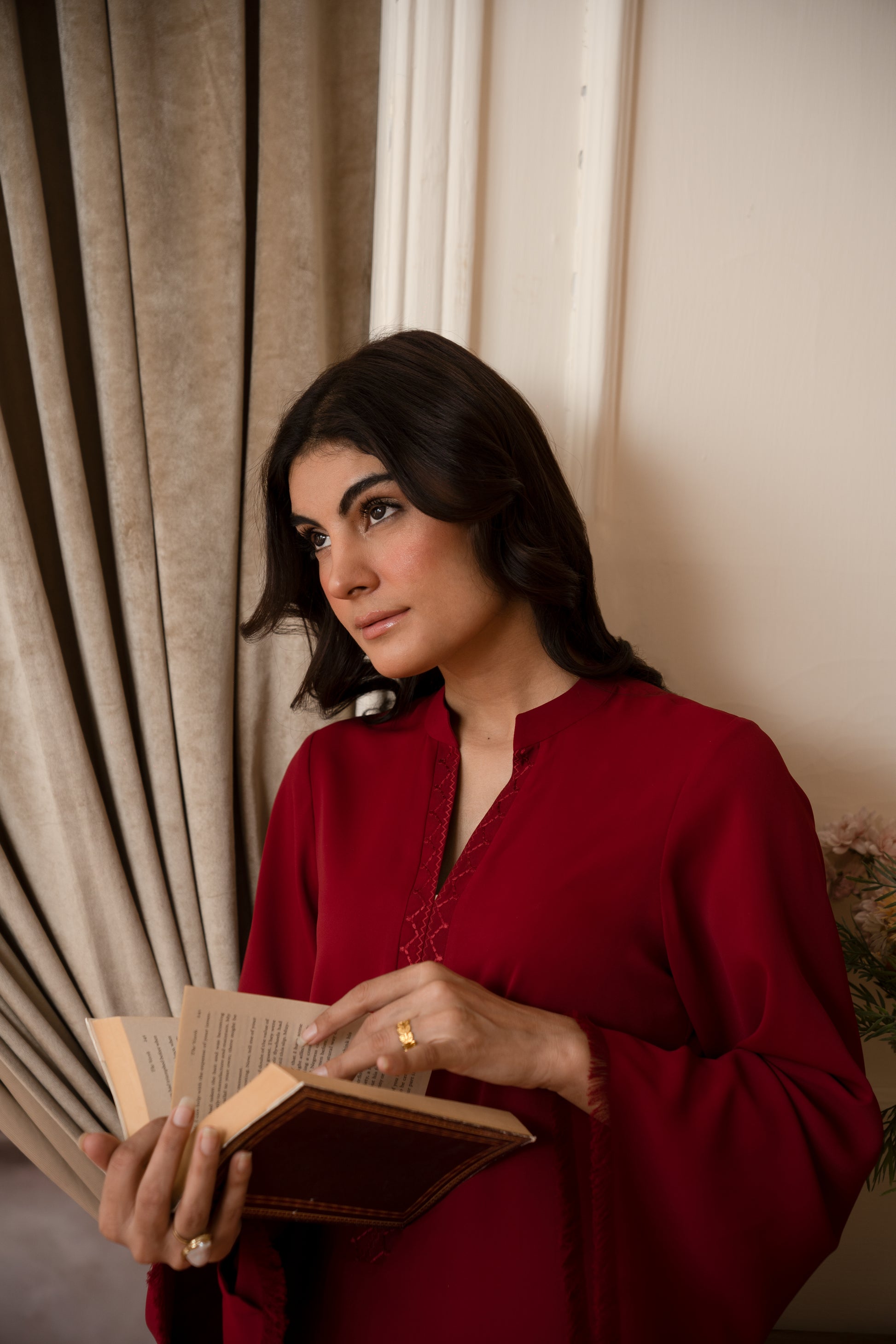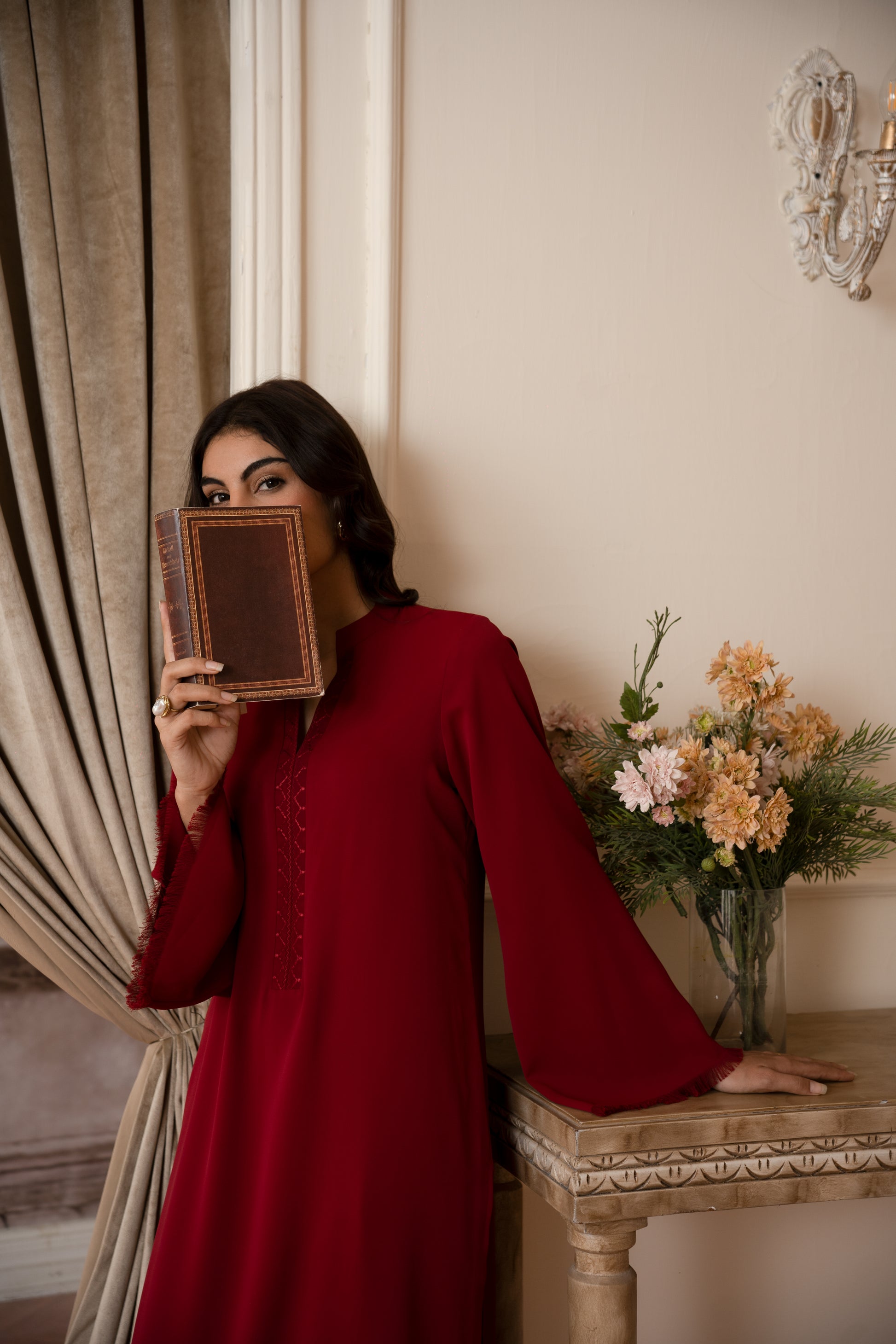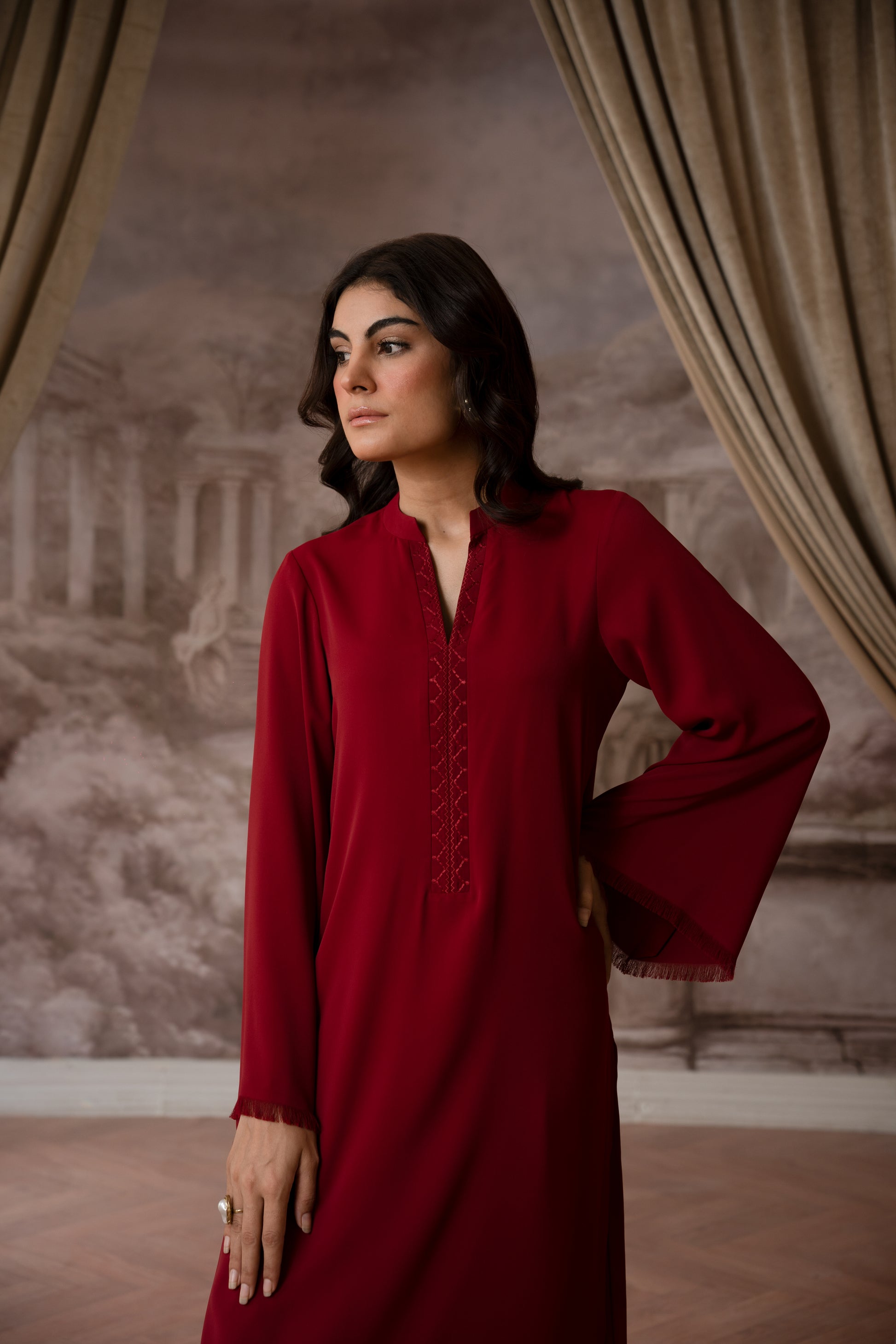 Confection: Two Pcs Loose Fit Shirt with Placket embroidery, and fringes, Culottes Trouser.